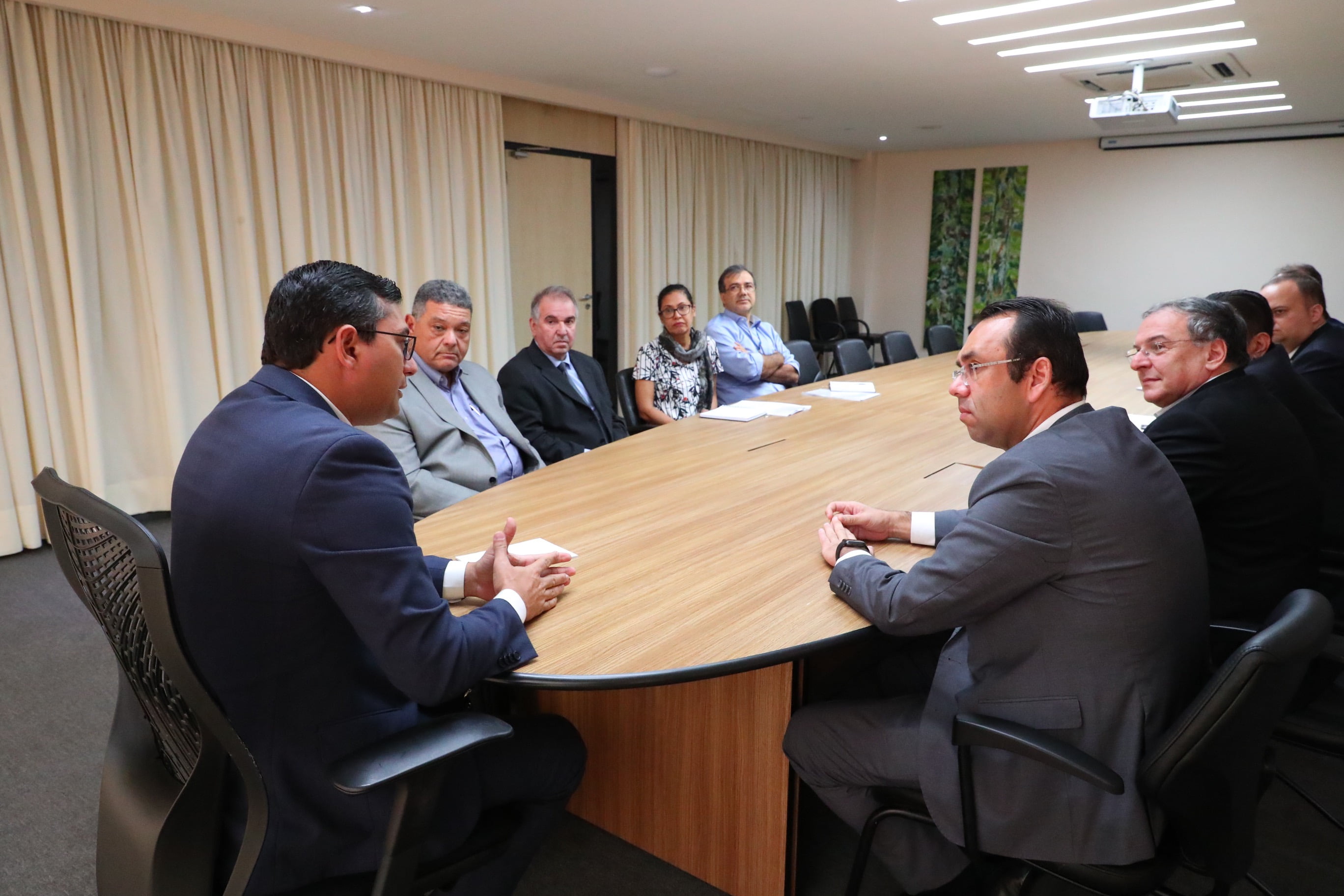 O governador Wilson Lima (PSC) recebeu, nesta quinta-feira (13/06), executivos do setor de eletroeletrônicos da Zona Franca de Manaus (ZFM), membros da Associação Nacional dos