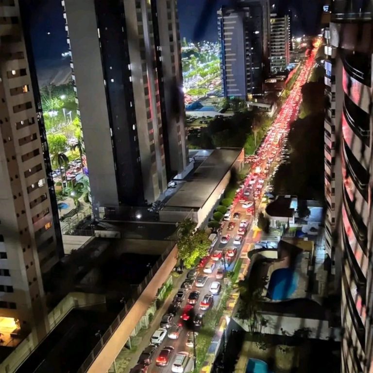 A imagem feita pelo morador de um dos prédios situados na orla da Ponta Negra impressiona: o trânsito intenso e praticamente parado na avenida de