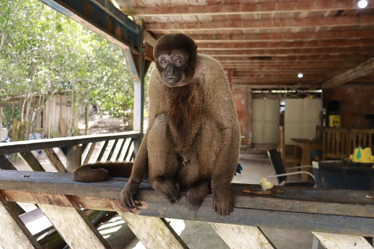 Um macaco-barrigudo (Lagothrix cana), espécie classificada como vulnerável à extinção, foi resgatado pelo Instituto de Proteção Ambiental do Amazonas (Ipaam) nesta segunda-feira (30/03), no km