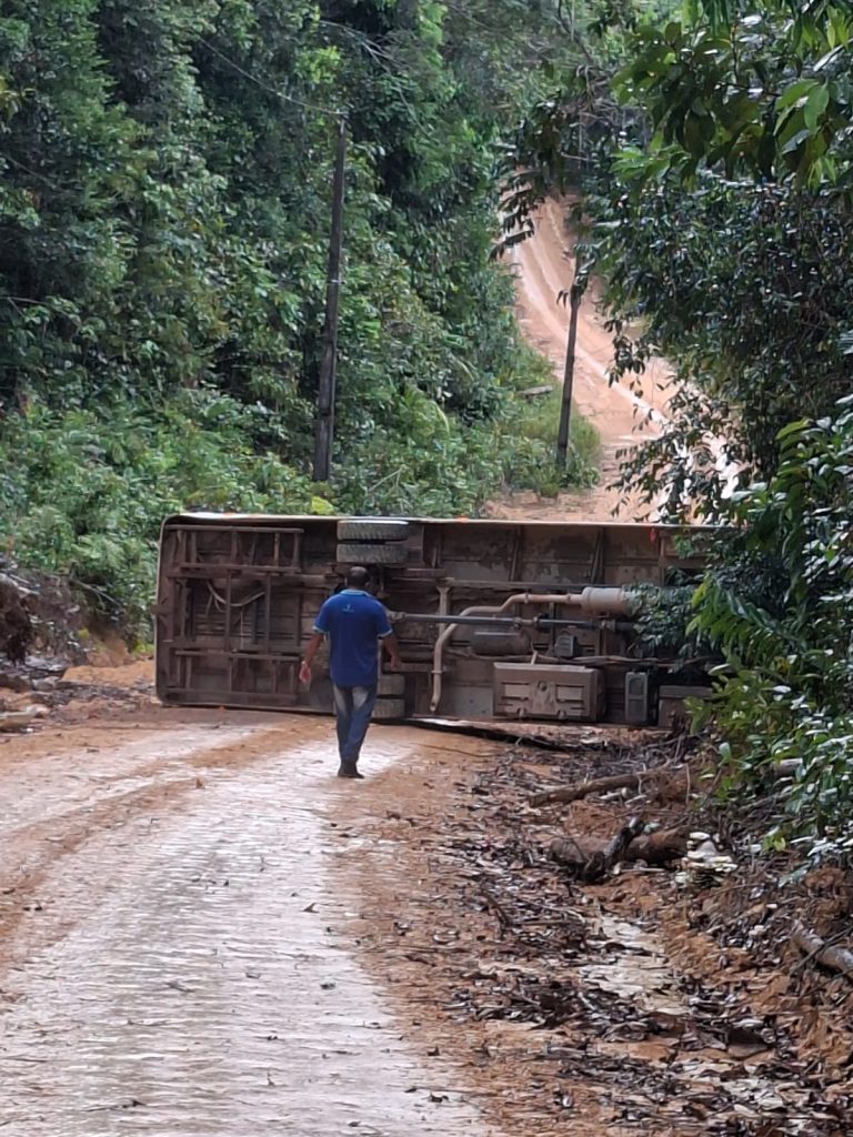 Um ônibus escolar tombou ontem em uma das ladeiras do ramal do Pau Rosa, na zona rural de Manaus. O motorista e as crianças que