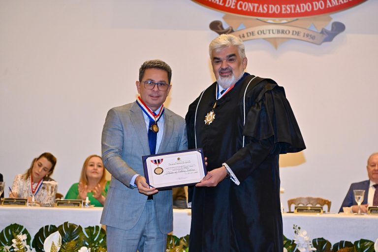 A mais alta comenda da Corte de Contas é destinada a homenagear personalidades que contribuem para o aprimoramento do controle e da administração pública. Em seu discurso, o vice-governador enfatizou que governar o Amazonas demanda apoio institucional e destacou que o TCE-AM colabora diretamente para a melhoria dos serviços públicos.