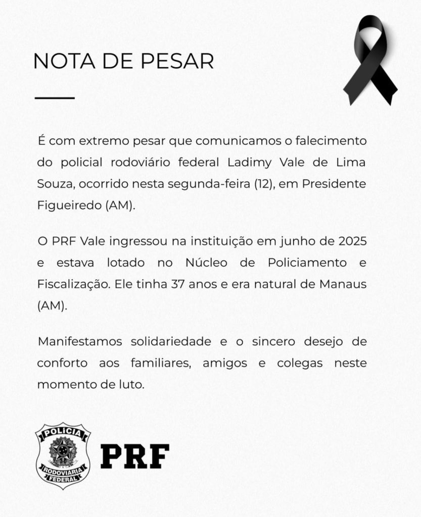 Um grave acidente de trânsito com vítima fatal foi registrado na manhã desta segunda-feira, dia 12, na BR-174, no município de Presidente Figueiredo, envolvendo uma viatura da Polícia Rodoviária Federal e resultando na morte de um agente.