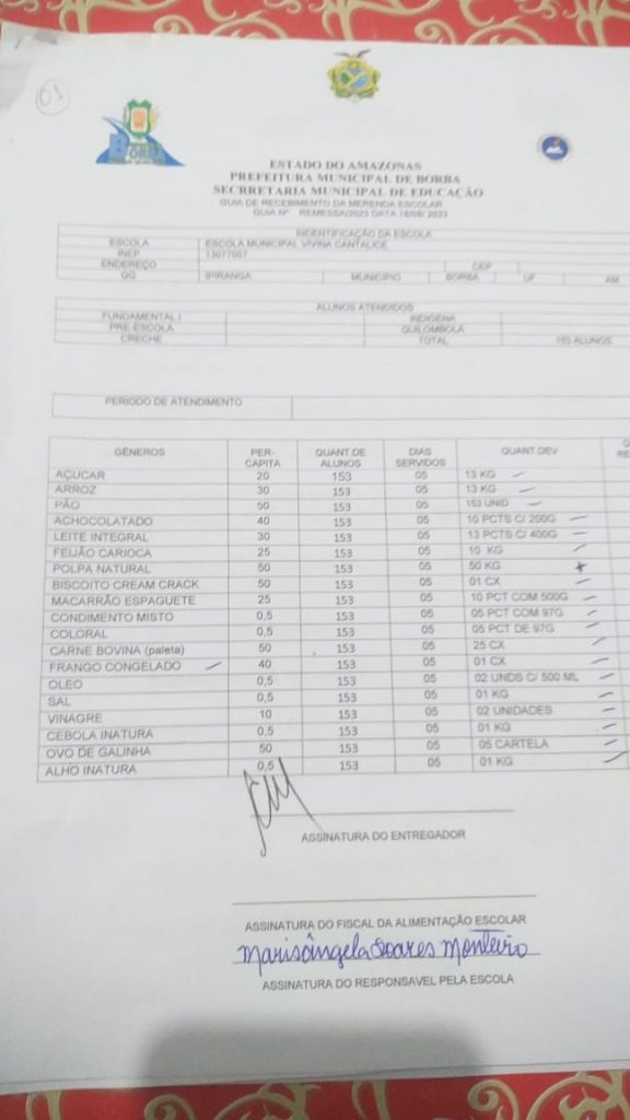 Vídeos e postagens em redes sociais recebidos ontem pelo blog desmentem a versão divulgada pelo prefeito de Borba, Simão Peixoto (Progressistas), acusando o interino que o substituiu quando de seu afastamento, José Pedro Graça (PSD), de ter sonegado merenda escolar aos alunos da rede municipal. No material enviado, aparecem várias comunidades agradecendo ao prefeito, à primeira dama, Ildeth Pantoja, e à secretária de Educação, Ioná Pantoja, pelo envio de itens da merenda escolar. Há guias de recebimento enviados pelas escolas também